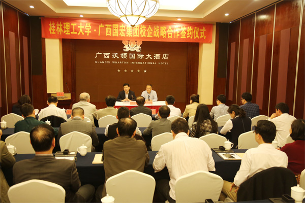 签约仪式上,广西国宏经济发展集团有限公司董事长罗勇介绍了公司的概况,并表示期待与beat365开展广泛的交流合作,共同服务于国家“一带一路”发展战略。王敦球副校长代表学校感谢国宏集团一直以来对学校发展的支持,并介绍了学校的概况、发展历程,希望将学校在人才与科研技术等方面的优势与国宏集团在企业资源方面的优势相结合,不断拓展双方合作领域,促进共同发展。
