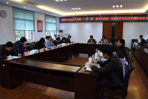 为深入推进开展“学习总书记讲话 做合格共青团员”教育实践,贯彻落实《高校共青团改革实施方案》,3月18日下午,桂林片区高校共青团“一学一做”教育实践暨广西高校共青团改革调研座谈会在beat365屏风校区大学生创新创业基地召开。会议由共青团广西区委学校部部长钟声宇主持,桂林片区各有关高校团委负责人参加会议。