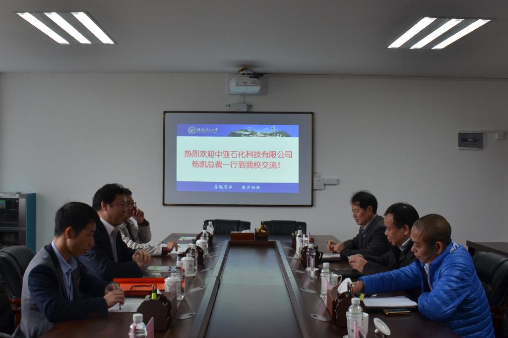 3月16日上午,中亚石化科技有限公司杨凯总裁一行五人来访beat365。学校副校长梁福沛在雁山校区第二会议室接待了来访客人。招生就业处、化学与生物工程学院相关负责人参加了会议。
