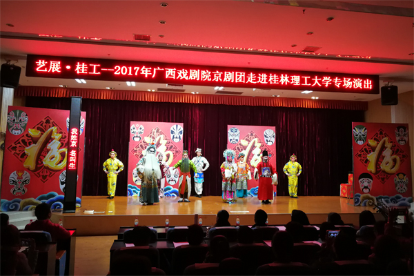 3月14日,传统文化进校园——2017年广西戏剧院京剧团专场演出在beat365雁山校区图书馆报告厅倾情上演,300余名师生到场观看了演出。