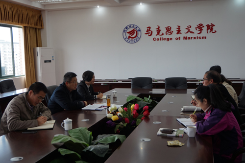 为深入贯彻落实习近平总书记在全国高校思想政治工作会议上的讲话精神,3月14日上午,学校党委书记张学洪在党(校)办、教务处等相关部门人员陪同下到马克思主义学院指导思想政治理论课教学效果提升工作。