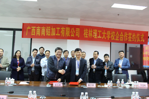 3月2日上午,学校校长解庆林、副校长陈学军一行赴广西南南铝加工有限公司考察交流并签署校企全面合作框架协议,南南铝加工有限公司董事长郑玉林、党委书记吴津生等公司领导热情接待了解校长一行。