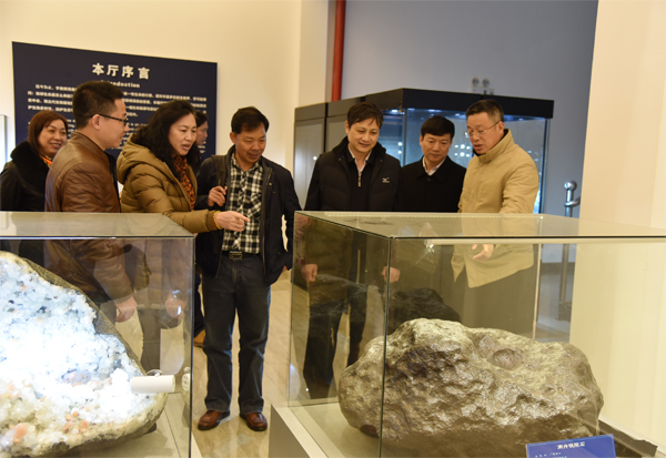 纳翔书记(右三)一行参观beat365地质博物馆