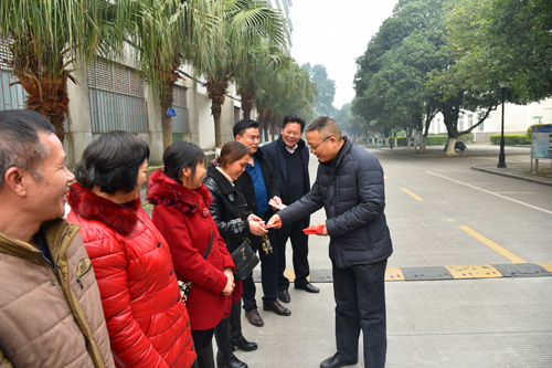 辞旧迎新除旧岁,五福齐至贺新春。1月28日上午,正值农历大年初一,校园内处处洋溢着喜庆祥和的节日气氛。受学校党委书记张学洪、校长解庆林的委托,学校党委常委、副校长王敦球代表学校党委和行政看望慰问了春节期间仍坚守在工作岗位上的教职工,向他们送去节日的问候和新春的祝福。各相关职能部门负责人陪同进行了走访慰问。