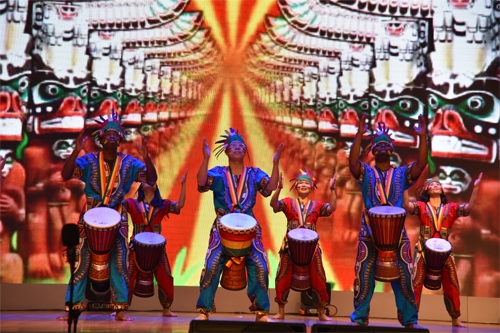 晚会在精彩、热闹的开场舞《福娃闹春》中拉开序幕。一个个精彩的节目相继上演。由离退休教师和学校广播电台同学带来的配乐诗朗诵《甲子荣光》,回顾了学校建校六十年来在人才培养、科学研究、文化传承和社会服务领域取得的辉煌成就,热情歌颂了一代代桂工人艰苦创业、敬业奉献、团结协作、开拓创新的优良传统和作风。仫佬族舞蹈《仫佬仫佬背背抱抱》精彩地演绎出母亲对子女的温馨呵护与无私爱护。教职工女声合唱团表演的《森林水车》和《共和国之恋》,美妙的歌声唱出了对祖国的热爱,对美好生活的向往;在串烧节目《致梦青春》中,满含韵味的服饰秀、青春活力的街舞和啦啦操,充分展现了beat365学子朝气蓬勃、奋发向上的精神面貌。离退处艺术协会带来的《小路》和《共青团之歌》,让观众宛如走在白桦林深处,倾听悠扬的手风琴声,感受前苏联歌曲的丝丝情意。校大学生艺术团表演的鼓子秧歌《脊梁》,将力与美完美结合,让人联想到桂工人在六十年办学历程中面对艰难险阻,依然挺起脊梁,奋勇向前,创造辉煌的可贵精神。大学生艺术团演唱的《我的歌声里》,将阿卡贝拉这种独具特色纯人声无伴奏的和声演唱艺术形式搬上舞台,演员们默契的配合、优美的声线,如梦似幻的舞台背景让观众深深为之着迷。《土家欢歌》、川剧《变脸》、《畅•丝路》、非洲手鼓《Moribayassa》,既有历史积淀深厚的民族传统舞蹈表演,又有异域风情的热情表达,中外文化的交流、碰撞与融合,将现场气氛推向了高潮。在合唱《走向复兴》“前进、前进、向前进”的美好寓意中,2017年元旦晚会圆满落幕。