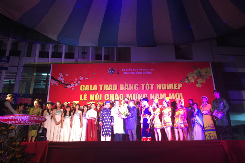 12月23日,交流团一行抵达越南平阳大学。平阳大学副校长GAO Viet Hieu和该校宣传部、学工处、团委负责人与beat365师生进行座谈交流。当日,恰逢平阳大学一年一度的毕业典礼暨校园文化嘉年华活动,beat365学子与越南学子一起演出并合影留念。