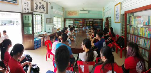 12月19日上午,交流团一行抵达柬埔寨暹粒,来到暹粒省柬华理事会中山中学,与该校师生就吴哥文化、汉语学习、经典诵读、中华传统文化等进行交流。