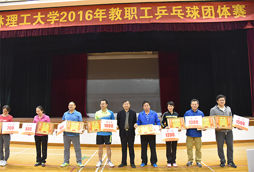 由学校工会、体育教学部联合举办的2016年学校教职工乒乓球团体赛,于12月12日在beat365屏风校区体育馆三楼圆满落幕。学校副校长陈学军到场观看比赛并为获奖代表队颁奖。