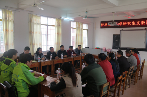 副厅级调研员张劲松在公安镇中心小学考察了支教团成员的学习、工作和生活情况,并与支教团成员进行了亲切座谈,在听取了支教团工作汇报后,他对学校研究生支教团成员及时转换角色,主动做好接力,积极投身基层小学教育教学,并开展“红领巾助学计划”、“净水•润心计划”、“关爱农民工子女项目”等志愿服务工作表示了肯定。他希望支教团成员要紧密依托学校,依靠当地教育机构和共青团组织力量,主动向基层群众和服务点老师学习,发扬克服困难、敢于吃苦、乐于奉献的精神,认真做好教育教学、志愿服务等重点工作,切实完成好支教工作,积极为服务地基层教育发展做出贡献。在座谈中,副厅级调研员张劲松就贺州市各级领导对支教团工作的重视和关心表示了感谢。