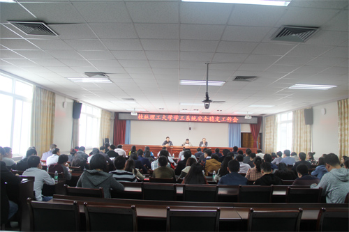 11月17日上午,学校学工系统在雁山校区召开安全稳定工作会,传达落实全区高校安全稳定工作会及学校专题理论学习会精神,安排部署学工系统安全稳定工作。学校副厅级调研员张劲松出席会议并讲话,学校全体学工干部100多人参加了会议。