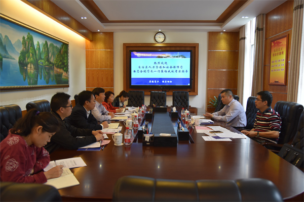 为推进高校体制机制改革相关工作,11月17日上午,自治区人力资源和社会保障厅党组成员、副厅长潘志金等一行来beat365调研。