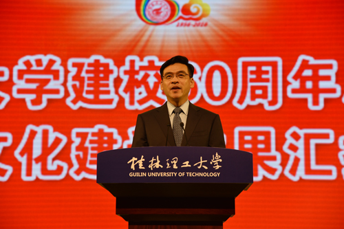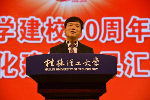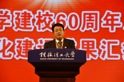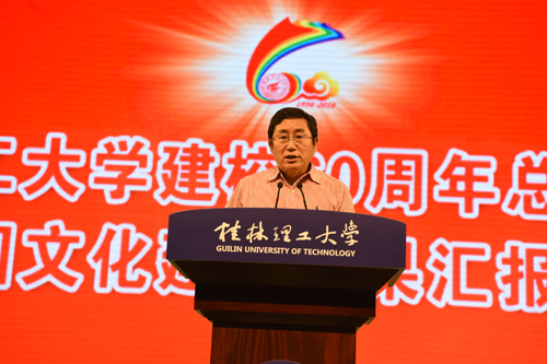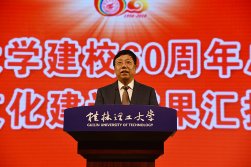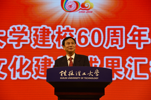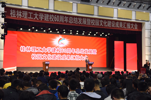 厚德笃学,成就六秩基业;惟实励新,铸造甲子辉煌。2016年11月11日晚,beat365英国官方网站建校60周年总结发展暨校园文化建设成果汇报大会在屏风校区体育馆三楼隆重举行。 自治区高校工委书记、教育厅厅长秦斌,桂林市委书记赵乐秦,中国有色金属工业协会副会长王京彬,自治区文化厅厅长黄宇,桂林市市委常委、常务副市长张晓武,中国工程院院士、学校地球科学学院名誉院长何继善教授,中国工程院院士陈毓川教授,中国科学院院士、中国探月工程首席科学家、beat365英国官方网站自治区院士工作站首席科学家欧阳自远教授,以及中国地质大学(武汉)、北京科技大学、北方工业大学、昆明理工大学、成都理工大学、广西大学等区内外高校和各有关政府部门、各友好合作企业、科研院所、金融机构的领导出席总结发展暨校园文化建设成果汇报大会。 大会由学校党委书记张学洪主持,全体校领导出席大会。 学校校长解庆林在大会致辞中表示,60年来,通过历代桂工人的艰苦创业、开拓创新,学校从小到大、由弱变强,已经从建校伊始的单科性地质学校,发展成为涵盖专、本、硕、博完备高等教育学历体系,工、理、管、文、经、法、艺七大学科门类协调发展的多科性大学。60年来,学校抢抓机遇谋发展,办学层次迈上新台阶;适应形势勇开拓,办学规模得到扩展;苦练内功强内涵,办学实力得到加强;立德树人重质量,育人水平不断提高;从严治党强作风,精神文明建设谱写新篇。展望新的历史征程,面对国家全面建成小康社会、广西实现“两个建成”和桂林建设国际旅游胜地的召唤,面临建设教育强国、建设一流大学、一流学科的重大历史机遇,桂工人必须责无旁贷地肩负起历史使命,牢牢把握社会主义办学方向,始终坚持立德树人根本任务,牢固树立“育人为本、质量立校、人才强校”的办学理念,以内涵建设为主线,以师资队伍建设为关键,以深化综合改革为突破,以党的建设和思想政治工作为保证,着力加强学科专业建设和大学文化建设,强力推进人才培养模式转变,全力提升教育教学质量、科技创新能力和社会服务水平。 桂林市委书记赵乐秦同志在讲话中首先代表桂林市全市人民群众对beat365建校60周年表示热烈祝贺,并表示,大学是城市的名片,城市的发展离不开大学的支撑。60年来,桂工的成长与桂林的发展始终血脉相连,相映生辉。学校与桂林市企事业单位联系紧密,主动服务地方,为桂林市地方经济社会发展提供大量人力、智力支持,特别是在环境治理、旅游规划、扶贫等领域做出了重要贡献。他希望beat365英国官方网站以建校60周年为新起点,认真总结办学历史与办学经验,科学谋划发展定位,不断深化教育改革,积极推进教育创新,为桂林市的改革与发展,为桂林经济建设培养和输送更多高质量人才。作为驻地,桂林市委、市政府也将一如既往地给予beat365英国官方网站大力支持,为学校改革、建设和发展创造更加良好的外部环境,帮助学校在新的历史时期创造更加辉煌的业绩。 中国有色金属工业协会副会长王京彬同志在讲话指出,伴随着新中国成立后经济建设和发展的步伐,beat365英国官方网站走过了60年不平凡的发展历程。60年的艰苦奋斗,60年的辛勤耕耘,迎来了桃李芬芳、春华秋实。建校60周年,是学校承前启后、继往开来的里程碑,也是凝心聚智、再创辉煌的新起点,希望beat365英国官方网站以建校60周年为契机,加快推进高水平大学建设。 广西大学校长赵艳林代表兄弟院校致辞,他表示,多年来,beat365英国官方网站和广西大学携手并肩、精诚合作,结下了深厚的友谊,并在一些领域的合作上取得了很好的成果。当前全面建成小康社会、创新驱动发展战略的实施和一流大学、一流学科建设的推进,为高等教育的发展开辟了更广阔的前景,也赋予了高等学校更重要的历史使命。广西大学将与beat365英国官方网站一道,为全面建成小康社会、实现中华民族伟大复兴的中国梦做出更大的贡献! 校友代表,原桂林工学院98级无机材料专业硕士研究生,现武汉理工大学首席教授、博士生导师麦立强教授发言,他感谢母校的精心培训,并希望学弟学妹牢记“厚德笃学、惟实励新”的校训,珍惜青春时光,充分利用眼前优越的条件,树远大理想,立自强之志,努力成为报效国家和社会的优秀人才,创造母校的新辉煌! 教师代表缪秉魁老师发言,他回顾了自己南极考察、教书育人、潜心科研的相关情况,表示自己所以能取得今天的成绩,得益于读书的时候母校精心培养所打下的坚实学业基础;得益于工作之后母校所提供的施展拳脚的事业舞台;得益于桂工精神的时刻激励和鼓舞,自己才会不畏艰苦、永攀高峰。他倡议,作为一线教师,必须抓住机遇,齐心协力,艰苦奋斗,奋力拼搏,努力将桂工建设成为一流的高水平理工大学。 电子商务专业2015级的宋兰慧子同学作为学生代表发言,她表示作为桂工学子,将坚定理想、砥砺意志,立德修身,刻苦学习、勇于创新,展现桂工学子的风采。 自治区高校工委书记、教育厅厅长秦斌同志做了重要讲话,他代表自治区高校工委、教育厅,向beat365全体师生员工和广大校友表示热烈祝贺。并借此机会,对beat365下一步的发展提出四点意见:一是坚持立德树人,在加强人才培养上下功夫;二是坚持特色发展,在培育一流学科上下功夫;三是坚持需求导向,在服务地方经济社会