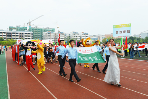 10月28日上午,beat365第45届田径运动会在雁山校区隆重开幕。学校党委书记张学洪,党委副书记王赣华,党委副书记、纪委书记孙宁,总会计师曾繁荣,正厅级调研员张鹏,副厅级调研员张劲松,以及相关职能部门和各学院负责人参加了开幕式。开幕式由副厅级调研员张劲松主持。 整齐的装束,坚毅的脸庞,伴随着激昂的运动员进行曲,校国旗班迈着铿锵有力的步伐,庄严地护送五星红旗和校运会会旗进入会场。紧随其后的是鲜花队和彩旗队,同学们风华正茂,气宇轩昂,挥舞着鲜艳的彩旗和缤纷的花束,为运动健儿们加油助威。接下来是各个学院的方阵依次入场,场上鼓声雄壮,校歌嘹亮,同学们昂首挺胸,步履轻快,神采奕奕,脸上洋溢着自信而从容的笑容,他们展现的是当代大学生的精神风貌,是对桂工学子风采的最好诠释。 入场式结束后,张学洪书记致运动会开幕辞。他首先代表学校党委和行政,对本次运动会的顺利举行表示热烈祝贺,向为筹备本次运动会付出辛勤劳动的老师和同学们表示衷心感谢!他指出,经过45届的发展,田径运动会已经成为桂工校园生活的重要组成部分,成为beat365全面贯彻党的教育方针、落实素质教育的重要体现。大学体育既是普及全民健身运动的有力措施,也是全面推进素质教育的重要内容,不仅促进师生强身健体,锻炼健康的体魄,而且能够培养师生团结合作的意识、勇敢坚强的品质、奋力拼搏的精神,这些对于加强校园文化建设,凝聚全体师生以良好的身体素质、饱满的精神面貌建设特色鲜明的高水平教学研究型理工大学具有重要意义。张书记强调,一年一度的校运会,既是对师生的体育运动水平和运动成绩的大检阅,也是全校师生道德品质、思想作风、精神面貌和校风校纪的大展示。他希望全体裁判员认真遵守裁判准则,秉公执法,公正公平,努力提高裁判水平,优化赛场秩序;希望全体运动员充分发扬“更高、更快、更强”的奥林匹克精神和“友谊第一、比赛第二”的良好体育道德风尚,以饱满的热情、昂扬的斗志投入比赛,顽强拼搏,奋力争先,赛出风格,赛出水平,力求竞技成绩和精神文明双丰收;希望全体观众尊重裁判员、尊重运动员,文明观赛事,理智待输赢,确保良好的赛风赛纪;希望各单位、各部门工作人员恪尽职守,热情服务,以一流的服务态度和良好的服务质量,认真做好后勤保障服务工作,确保运动会顺利运行。最后,张书记预祝学校第45届田径运动会取得圆满成功。 随后,悠扬的音乐声在田径运动场上响起,团体操方阵的同学们踏着歌声,斗志昂扬。他们的动作潇洒流畅,姿态优雅动人。他们在音乐声中奔跑,放飞梦想,燃烧青春之火,给现场观众带来了视觉的盛宴。武术协会的同学们带来了柔与美完美结合的太极表演,彰显着中华文化的源远流长与博大精深。紧接着,音乐停,鼓声起,活灵活现的舞龙舞狮表演将现场的气氛推向高潮,也深刻体现了桂工学子们对传统文化及精神的重视与传承。 开幕式上,李元坤同学和朱涌老师分别代表运动员和裁判员宣誓。 最后,张学洪书记宣布beat365第45届田径运动会开幕。全场雷鸣般的掌声过后,运动员们随即投入到各项紧张激烈的比拼角逐中。