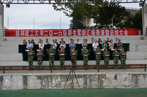 9月30日上午,2016级本科新生军训汇报表演暨总结大会分别在屏风校区、雁山校区运动场隆重举行。学校副校长肖岳峰、梁福沛,空降兵学院政治部副主任周升义上校,95389部队副参谋长朱一鸣少校出席大会。学校党(校)办、宣传部、学工部(处)、武装部(保卫处)、校团委、教务处、后勤处等部门负责人和各学院相关负责人在主席台观礼。 千淘万漉虽辛苦,历尽军训始到金。早上8点多,历经了10天艰苦军训,早已把每个动作都牢记于心的新生们,还是早早地到运动场集合进行最后的动作温习,为的是给汇报表演交上一份圆满的答卷。上午10点,在全场肃然起立奏唱庄严雄壮的国歌之后,仪仗队护卫着人民解放军军旗率先接受检阅,随后,学校副校长梁福沛在承训部队负责人的陪同下检阅了各军训方队。 随后,出场汇演的男子、女子军事项目表演方队“杀”声响亮,踢腿凌厉有力,出拳虎虎生威,充分展现出了新生们历经磨练后英姿勃发的精神风貌。 汇演结束后,空降兵学院政治部副主任周升义上校、95389部队副参谋长朱一鸣少校作了讲话。他们对beat365各级领导及全体教职工在军训期间给予承训官兵的关心和支持,对新生们给予的配合、尊重和理解表示衷心感谢!同时,他们对新生们在军训中的优异表现给予了充分肯定,并祝愿同学们学业有成、事业辉煌,祝愿beat365英国官方网站蒸蒸日上,明天更美好。军训学生代表平晨曦在会上发言,表示经过军训的历练,大家都得到了进步和成长,大学四年要踏着稳健的步伐、带着自信的笑容披荆斩棘迈向更加美好的明天。 学校学工部(处)部(处)长唐壮东、管理学院副院长蒙永亨宣读了《关于表彰2016级军训先进个人的决定》,并希望广大同学向先进学习,厚德笃学、惟实励新,内强素质、外塑形象,以良好的精神状态、饱满的学习热情投入到新的学习生活中,努力成长为厚德博学、创新有为的新时代青年大学生。 学校副校长肖岳峰、梁福沛作了讲话。他们首先代表学校党委和行政,向关心、指导和支持beat365军训工作的空降兵学院、95389部队、武警桂林市支队的领导和广大承训官兵致以崇高的敬意和衷心的感谢!对参训的全体新同学表示亲切的慰问,对同学们在此次军训中取得的良好成绩表示热烈的祝贺!同时,他们希望同学们在今后的学习、工作和生活当中,巩固和发扬好军训的成果,为大学生活和职业生涯的全面发展打下良好的基础。 最后,本次大会在激昂的校歌大合唱中落下了帷幕。历经十天刻苦的军训,2016级的新生们,一定能以最强健的体魄,最抖擞的精神,去拥抱美好的大学生活。