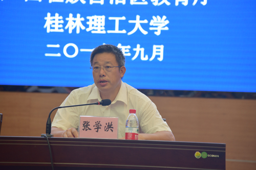 为深入贯彻落实“广西高等教育强基创优计划”,全面了解2016年度广西高等教育创优计划教学相关项目建设进展情况、提高建设水平,并为2017年安排建设计划提供参考依据,进一步推进高校创新创业教育改革,9月24日,“2016年度广西高等教育创优计划教学相关项目建设情况汇报评议会”在beat365召开。2016年获得自治区财政经费资助的202个创优项目参加了本次评议会的评审。广西教育厅高教处处长赵益真到会指导并做重要讲话。beat365党委书记张学洪出席会议并致辞。评议会由beat365副校长梁福沛主持。全区35所高校所有立项项目负责人、beat365相关职能部门及各教学单位的相关人员等300余人参加了评议会。广西大学副校长吴志强、广西医科大学副校长张志勇、广西师范学院副院长彭宁、贺州学院副院长何星存、百色学院副院长罗志发以及beat365副校长梁福沛等作为评议组组长参加了评审。