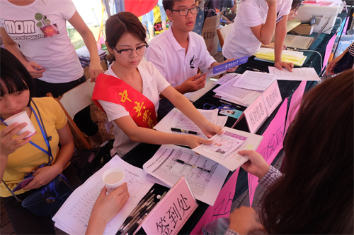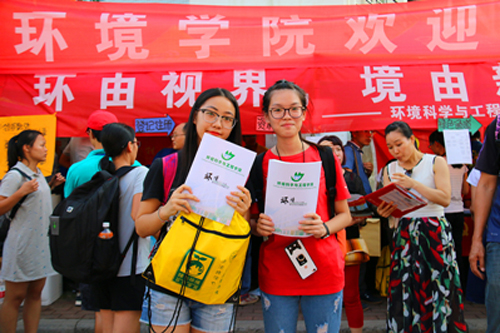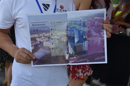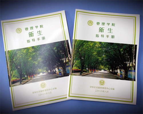 各学院党委积极组织党员和志愿者编写各类帮助新生适应大学生活的指南,并及时发放到新生手中。图为艺术学院、管理学院和环境学院组织编写的资料。