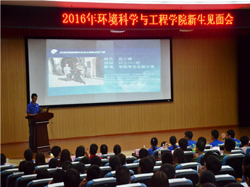 各学院党委组织召开家长见面会、新生见面会和专业推介会,让学生和家长全面了解学校和学院有关情况。图为环境学院新生见面会现场。