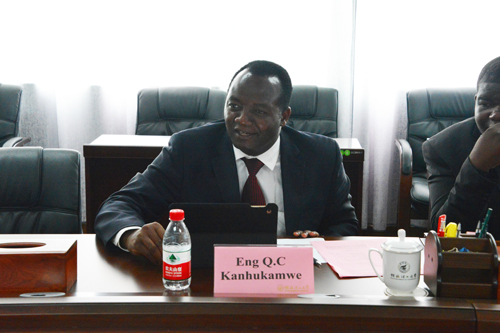 正厅级调研员张鹏对哈拉雷理工大学校长坎赫卡姆威的来访表示热烈欢迎