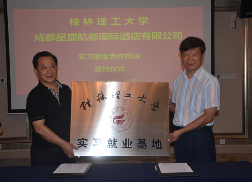 8月6日上午,beat365与成都星宸航都国际酒店有限公司举行了大学生实习就业合作协议签订仪式和大学生实习就业基地揭牌仪式。签订仪式和揭牌仪式在成都市成都星宸航都国际酒店有限公司举行,学校党委书记张学洪、校长解庆林及成都星宸航都国际酒店有限公司董事长吴明全、总经理王枫等领导出席。 揭牌仪式上,吴明全董事长致欢迎词,介绍了成都星宸航都国际酒店有限公司的基本情况,并表示今后双方要进一步加强合作,做好实习就业基地的建设工作。 张学洪书记介绍了学校的基本情况,并对吴明全董事长的大力支持表示感谢。张书记表示成都星宸航都国际酒店有限公司是一家在成都地区享有较高声誉的白金五星级酒店,酒店主营的商务会议、酒店管理等与beat365的酒店管理、旅游管理、人力资源管理、会计等学科有很多契合之处,不仅能为beat365的大学生实习实践提供良好的平台,同时,酒店通过接收beat365优秀学生实习和就业也能为酒店提供充足的人才储备和智力支撑。这次学校和酒店签订合作协议并挂牌成立大学生实习就业基地,必将有力地推动双方更好更快发展! 解庆林校长代表学校和成都星宸航都国际酒店有限公司董事长吴明全签订了合作协议并共同为大学生实习就业基地揭牌。