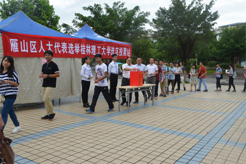 7月5日,beat365分别在雁山校区和屏风校区举行雁山区、七星区人大代表换届选举工作。 根据雁山区人大换届选举工作的统一部署,7月5日上午,beat365组织师生在雁山校区设立的1号和2号投票站进行了选举投票。学校党委书记张学洪、校长解庆林、党委副书记孙宁、正厅级调研员张鹏参加了投票。经beat365雁山选区选举委员会确认,beat365雁山选区共有选民928人,参加投票选举的选民863人,参选率达93%。 同一天上午,beat365在屏风校区图书馆报告厅召开桂林市七星区46选区(beat365英国官方网站选区)第十一届人大代表换届选举大会。王敦球副校长在会上强调了人大代表换届选举工作的重要意义,希望广大居民以高度的政治责任感和使命感行使好和履行好自己的权利,投好神圣的一票。beat365在屏风校区共设立了6个投票站,1个流动投票箱。七星区46选区(beat365英国官方网站选区)有选民3822人参加投票。 在学校统一领导和周密部署下,社区、学工部(处)、工会等各有关部门各司其职,投票工作有条不紊,选民们以饱满的政治热情投下了自己庄严的一票,圆满完成了雁山区和七星区人大代表换届选举工作。目前,beat365雁山区、七星区人大代表选举结果已上报有关部门,待批复后将予以正式公告。