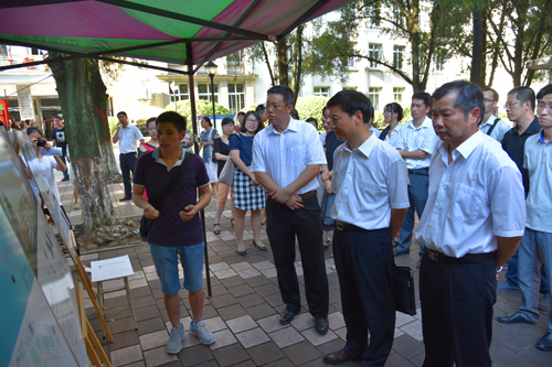 6月21日—22日,学校党委书记张学洪,校长解庆林,副校长陈学军、梁福沛、王敦球先后来到屏风校区教四楼前广场土木与建筑工程学院2016届城市规划和建筑学专业优秀毕业设计作品展览现场参观指导,校团委、教务处、发展规划与教学质量监控中心、土木与建筑工程学院负责人陪同参观指导。