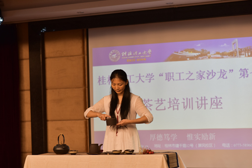 讲座中,吴老师从认识茶具、国家标准行茶手法、茶与健康、茶叶的储存、各种茶类冲泡方法及茶艺礼仪等方面详细讲授了茶艺的知识,并进行了茶艺流程的表演示范。在体验环节,教职工们与茶艺师面对面品茗、交流,茶艺师详细解说泡茶程序、动作要领、泡茶礼仪等,老师们也在亲自参与中体验到茶艺的精髓与乐趣,享受了一段静气舒怀、涤荡身心的“茶艺旅程”。