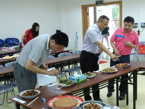 在厨艺大赛上,王敦球副校长、东江街道工委书记王宏星和评委们一起根据色、香、味、形等标准对参赛选手的60多道参赛作品进行了仔细评判,逐一打分。评选出一等奖3名、二等奖6名、三等奖12名。