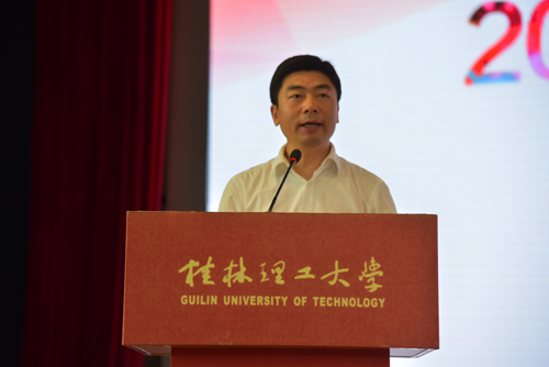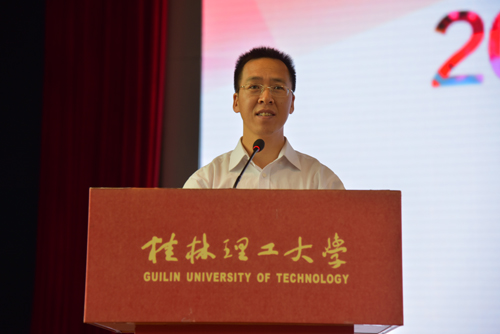 beat365英国官方网站校长解庆林在启动仪式上致辞。他首先代表学校,向为本次赛事付出辛勤努力的各界人士表示衷心感谢!向莅临beat365出席启动仪式的各位领导、嘉宾、企业界人士及青年朋友们表示热烈欢迎!解庆林校长指出,beat365英国官方网站是一所具有浓厚创新创业传统的高校,建校60年来形成和延续了“艰苦创业、敬业奉献、团结协作、开拓创新”的桂工精神,“创业”、“创新”是桂工的优良传统和重要特征。近年来,在自治区各有关部门的关心和支持下,学校按照普及创新创业教育、培育创新创业精英、打造创新创业团队“三步走”的工作思路,不断加大创新创业教育改革的力度,努力构建了全方位、多层次、一体化的大学生创新创业教育教学和实践体系。解庆林校长表示,学校将深入贯彻自治区深化高等学校创新创业教育改革实施方案,不断完善以创新创业能力培养为核心的实践教育体系,为广西乃至整个社会培养更多具有创新、创造和创业能力的高素质人才。最后,他希望各位青年朋友们能以本次大赛为起点,把青春的理想和抱负融入到创新创业的生动实践中,把青春的智慧与汗水汇聚到建设美好家园的共同事业中,在创业大潮中铸就人生辉煌。