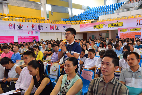 随后,在青年创业创新大讲堂上,围绕“共建广西创新创业生态圈——提升广西在‘一带一路’战略发展中的竞争力”这一主题,汉军集团董事长莫汉军、广东天使会创始人兼秘书长何巨、广西融水县牧恩生态养殖有限公司总经理蒙可畅分别发表了精彩的主旨演讲。