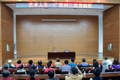在报告会现场,黄婉秋女士回顾了五十多年前出演电影《刘三姐》的始末,讲述了自己磨难中坚强笑对人生、成名后仍然孜孜不倦地弘扬民歌艺术的人生经历,分享了缱绻四十载的浪漫真情,让大家感受到了一个质朴、自然却又自尊、自强的人民艺术家的赤子之心。