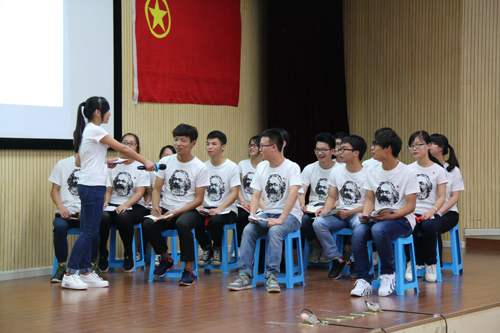 梁福沛副校长为2016年示范团日活动获奖团支部颁发奖状