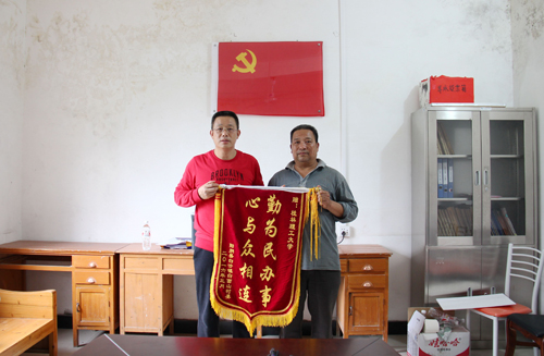 张学洪书记代表学校接受白面山村委赠送的锦旗