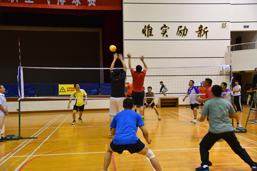 全校各分工会组成了男子组、女子组共50支代表队参加此次比赛。赛场上的男教职工们朝气蓬勃,女教职工们英姿飒爽。他们以娴熟的技术、默契的配合、凌厉的攻势,打造出个个美妙的瞬间。随着一个个气势如虹的大力扣球、蜻蜓点水般的巧打轻吊,现场的气氛渐进高涨。场外的啦啦队激情洋溢,加油声、喝彩声、掌声此起彼伏。