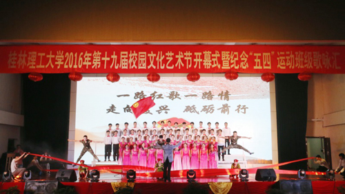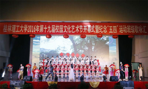 4月29日晚,学校一年一度的纪念“五四”运动班级歌咏比赛决赛在雁山校区体育综合训练馆隆重举行。学校党委副书记王赣华、副厅级调研员张劲松,校党委学工部、组织部、团委等相关部门负责人及各学院党委副书记、学工干部和3000余名学生一同观看了比赛。