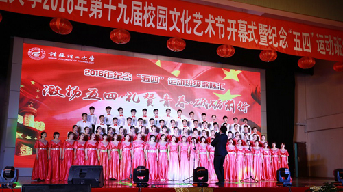 比赛在校大学生艺术团高昂的《光荣啊,中国共青团》歌声中正式拉开序幕。随之精彩纷呈的表演接踵而至,理学院演唱的《壮族敬酒歌》尽显民族特色,整齐嘹亮的歌声和靓丽的服饰令人耳目一新;机械与控制工程学院一曲气势雄伟的《中国人》尽显中华民族的强大凝聚力;测绘地理信息学院表演的《欢乐的那达慕》高亢嘹亮,华丽的服饰和新奇的道具给观众带来了独特的视觉享受;化学与生物工程学院一曲风格独特、充满活力的《马克思是个九零后》嗨翻全场,他们唱出了新一代青年别样的激情与力量;土木与建筑工程学院演唱的《青春舞曲》更是将同学们的自我风采和青春活力表现得淋漓尽致;管理学院以一曲喜庆愉悦的《欢乐中国年》再次将全场气氛推向高潮;信息科学与工程学院以一首感人的《亲爱的小孩》,满怀温情,打动了全场观众;外国语学院为大家带来的歌曲是《在灿烂阳光下》,他们以扎实的唱功和优美的歌声征服了现场评委,夺得了比赛桂冠。伴随着歌咏汇的进行,学校第十九届校园文化艺术节就此拉开帷幕。