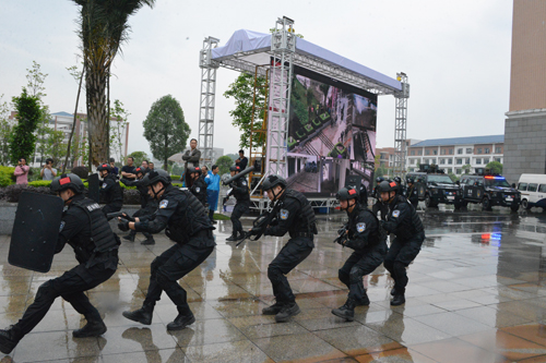 会上,除了展示精良的武器装备及设施外,与会人员还观看了beat365安全保卫工作宣传片及宣传展板。