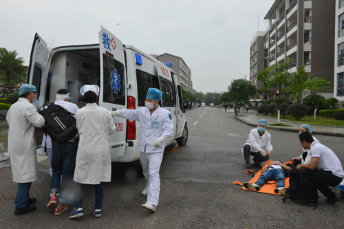 4月27日上午,由自治区高校工委、教育厅主办,beat365承办,桂林市反恐办、桂林市公安局、桂林市消防支队、武警桂林市支队、桂林市卫计委协办的2016年广西高校安全综合应急处置演练观摩会在beat365雁山校区举行。