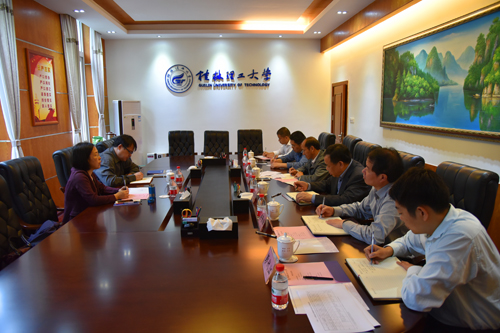 4月20日上午,自治区教育厅发展规划处处长李向红一行到beat365屏风校区调研指导。beat365副校长梁福沛、桂林电子科技大学副校长欧阳缮出席座谈会,两校招生就业部门负责人参加座谈。