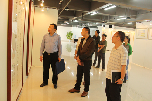 梁福沛副校长在艺术学院领导班子的陪同下参观了beat365英国官方网站艺术馆,听取了学院党政主要负责人对艺术馆的情况介绍及近期和中长期建设规划。随后,梁副校长来到博雅楼美术馆,观摩了正在进行的设计基础教学研讨沙龙,听取了学院对学科专业建设、课程改革、人才培养、教学条件建设等方面的汇报。