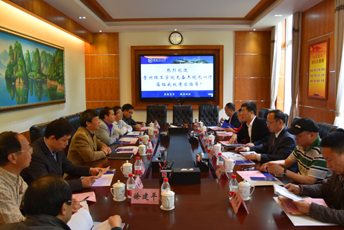 4月11日上午,贵州理工学院院长龙奋杰一行六人到访beat365。学校校长解庆林在屏风校区第二会议室接待了来访客人,副校长周国清出席座谈会。科技处、教育部重点实验室、教育部工程中心、机械与控制工程学院、发展规划与教学质量监控中心负责人参加了座谈。