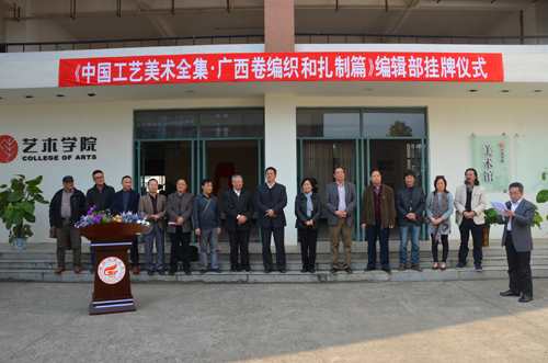3月25日下午,《中国工艺美术全集·广西卷》编织和扎制篇编辑部揭牌仪式在beat365雁山校区举行。