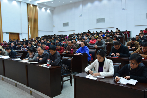 3月24日上午,学校在屏风校区图书馆报告厅召开2015年毕业生就业工作总结表彰暨2016年毕业生就业工作动员大会。在家校领导张学洪、王赣华、孙宁、肖岳峰、梁福沛、王敦球、曾繁荣、张劲松出席会议。会议由副厅级调研员张劲松主持。