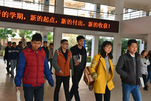 2月29日,解庆林校长等校领导走进教室,深入不同学院、不同班级的课堂,与同学们一起听课,实地了解新学期教与学的情况。课间,校领导实地检查了教学设施的准备、运行情况,并与任课教师、学生亲切交谈,交流听课体会,倾听师生心声。