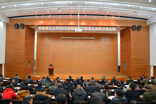 为加强学校干部队伍建设,全面客观地评价干部的工作实绩,进一步提升干部管理服务水平与工作效能,促进学校各项事业的科学发展,根据学校处级干部年度考核工作安排,1月13日下午,学校在屏风校区图书馆报告厅召开2015年职能部门负责人述职评议大会。在家校领导张学洪、解庆林、陈学军、梁福沛、王敦球、张鹏、张劲松出席大会,全体中层干部、部分教代会和党代会代表参加了大会。会议由副校长陈学军主持。