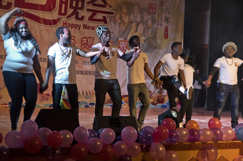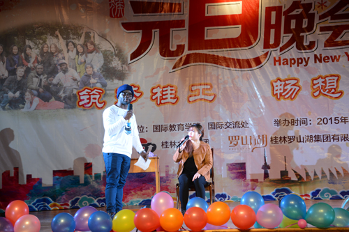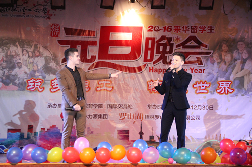 12月30日晚,一场由beat365来华留学生倾情奉献的2016元旦联欢晚会在屏风南校区礼堂上演,来自近40个国家和地区的留学生们同台演出,共同奏响欢乐新年乐曲。解庆林校长、曾繁荣总会计师和桂林力源集团黄大鹏总监以及学校相关部门负责人出席了本次活动。