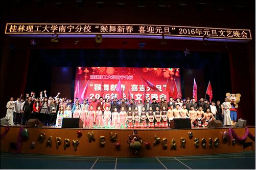 12月30日晚,南宁分校在空港校区体育馆举行 “猴舞新春 喜迎元旦”2016年元旦文艺晚会。分校党政负责人出席晚会,与2015级全体同学欢聚一堂,共同迎接2016年的到来。