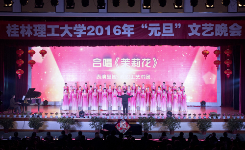 整场晚会内容丰富多彩,编排独具匠心,汇集了歌曲、舞蹈、武术、桂剧等多种表演,给观众们带来了一场难忘的视听盛宴。晚会在舞狮队的同学们及附属小学的小朋友们的舞蹈《喜迎春》浓烈喜庆的新春氛围中拉开序幕。校教职工女声合唱团带来的《茉莉花》和《青春舞曲》表现出了我国民歌的欢快唯美;离退处带来的舞蹈《中国梦》舞出了国家富强、民族复兴、百姓安康的美好希望;大学生艺术团带来的啦啦操《梦