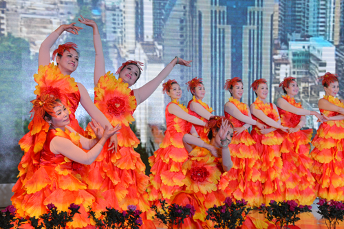 ·衣》既展现出江南的温婉柔美,又饱含艺术的深层美感;机关二分会带来的《竹竿舞》民族韵味浓厚,展现出少数民族人民独特的风俗习惯;人文社会科学学院的歌舞表演《欢乐和谐民族情》展现出各族人民的团结友爱;国际教育学院带来的桂剧《桂林渔鼓》体现了留学生对于中国民间文化、特色文化的热爱;教职工艺术团带来的《走在山水间》舞蹈以情入景、以舞入画,将欢快的舞蹈与桂林的秀美山水有机结合,极具美感;大学生艺术团的武术表演《武林风》,表演者除了拥有精湛绝伦的武术外,道具中加入的烟花,动感与美感达到完美结合,台下观众掌声阵阵,呼喊声此起彼伏;理学院的歌伴舞《相亲相爱》温暖而又激励人心。整场晚会气氛热烈,观众欢呼声不断。最后,晚会在照亮锦绣前程的舞蹈《张灯结彩》中圆满结束。