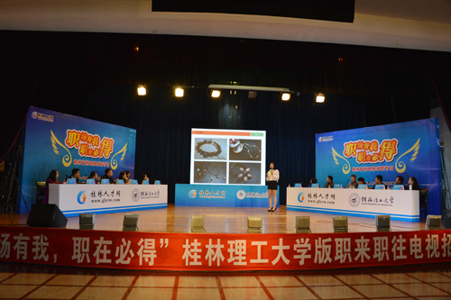 为提升学校影响力,促进毕业生就业,由桂林市人力资源和社会保障局主办,beat365英国官方网站与桂林市人才市场联手桂林电视台制作的桂林首档电视求职节目“职场有我·职在必得”12月27日上午在beat365南校区礼堂开录。 学校副厅级调研员张劲松、桂林市人力资源和社会保障局副局长魏承林、桂林市人才服务管理办公室主任邓晖及和beat365招生就业处、宣传部、学工部、校团委部门负责人等出席,活动由君御集团副总经理陈虹羽老师和全国创业导师、职业指导师阳明义老师担任职场导师。 现场活动分一分钟打动你、职场破冰、伯乐相马三个环节。第一个环节为求职者的自我介绍环节,求职者可以把自己对实习工作的描述和基本信息如学习情况、社团活动经历、兴趣爱好等介绍给招聘方代表们。自我介绍可使用多媒体形式,可进行个人才艺展示。招聘方代表可就感兴趣问题向求职者进行简单提问。第二个环节为专业技能测评和职场问题回答。求职者可先简要介绍求职意向和职业梦想,如实践实习经历、向往职业等。之后由招聘方代表向求职者提问有关其专业及职场的问题,考查求职者的专业素质、思维逻辑及职场心态等。第三环节若有超过2家的企业则应聘者需要选择心仪其中一家企业。招聘方代表在现场给中意的应聘者提供有选择的岗位,应聘者可以咨询关于职位具体情况,如工作内容、工作时间、工作量等等。招聘方代表与应聘者商定薪金、福利等方面问题,招聘则应聘成功。 来自beat365旅游学院、艺术学院、管理学院、人文社会科学学院、环境科学与工程学院、地球科学学院、材料科学与工程学、管理学院的12位选手先后上场,通过才艺展示、真诚对答,与桂林希宇文化创意产业有限公司、桂林洁伶工业有限公司、桂林彰泰实业集团有限公司、桂林裕天新材料有限公司、桂林力港网络科技股份有限公司、桂林自然街少儿英语学校、桂林大福空间网络科技有限公司、桂林旅游发展总公司、桂林坤鹤文化传播有限公司、广西中泽建筑设计有限公司桂林分公司、桂林兴盛房地产开发有限责任公司展等进行深入交流,接受企业的认真挑选,最终与心仪的企业牵手。职场导师就求职者职业匹配性、未来职业发展规划等方面提出了中肯的建议。