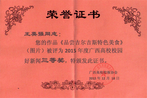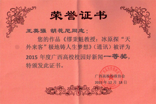 近日,由广西高校校报协会牵头承办的广西高校2015年度“最佳新闻网站”“最佳新闻网站栏目”“校园好新闻”评选活动公布了获奖名单,beat365有5件作品获得奖励。其中,beat365新闻网获广西高校最佳新闻网站二等奖,新闻网的《“三严三实”专题教育》栏目获最佳新闻栏目二等奖,由王英强、胡花尼撰写的《缪秉魁教授:冰原探“天外来客” 极地铸人生梦想》获校园好新闻(通讯)一等奖,由beat365英国官方网站宣传部、学工部撰写的《“beat365一学子因交通意外事故不幸脑死亡 捐献器官五人受益”》一文获校园好新闻(消息)一等奖,王英强拍摄的题为《品尝吉尔吉斯特色美食》图片获校园好新闻(图片)三等奖。 据悉,本次评选活动中,共有全区32所高校的158件作品参评,全部聘请校外专家担任评委进行综合评定,最终评选出71件获奖作品。其中最佳新闻网站参评稿件共21件,评出一等奖2名、二等奖4名、三等奖6名;最佳新闻栏目参评稿件共22件,评出一等奖2名、二等奖4名、三等奖6名;校园好新闻之消息参评稿件共42件,评出一等奖3名、二等奖5名、三等奖9名(因最后两名评分相同);校园好新闻之通讯参评稿件共45件,评出一等奖3名、二等奖5名、三等奖8名;校园好新闻之评论参评稿件共7件,评出一等奖1名、二等奖1名;校园好新闻之图片参评稿件共21件,评出一等奖2名、二等奖4名、三等奖6名。